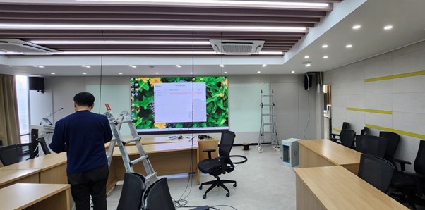 우선 현재 전자교탁 연결 상황, 배관/배선, 음향 시스템, 천장 상태를 꼼꼼히 확인하고 필요 장비들을 준비합니다.